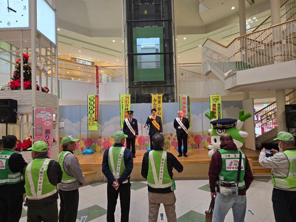 今年は11月12日(水)アリオ深谷にて、埼玉県議会防犯のまちづくり推進議員連盟の主催により「防犯のまちづくり街頭キャンペーン」開催され、自治会連合会も参加し、啓発品等の配布をおこない、市民皆様の防犯意識の向上を図りました。